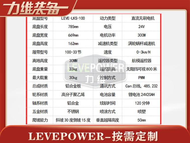 全地形底盤。電池采用24v45ah磷酸鐵鋰鋰電池,持續(xù)續(xù)航時(shí)間可達(dá)4個(gè)小時(shí)長時(shí)間續(xù)航。