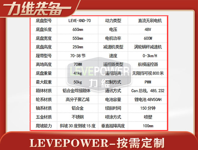 LEVE-XND-70特種橡膠履帶底盤采用天橡膠內(nèi)加凱夫拉纖維經(jīng)過(guò)高溫硫化擠壓成型,材質(zhì)輕、耐磨性能強(qiáng),是一款不錯(cuò)機(jī)器人橡膠履帶。