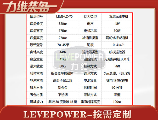 LEVE-LZ-70特種橡膠履帶底盤采用天橡膠內(nèi)加凱夫拉纖維經(jīng)過(guò)高溫硫化擠壓成型,材質(zhì)輕、耐磨性能強(qiáng),是一款不錯(cuò)機(jī)器人橡膠履帶。
